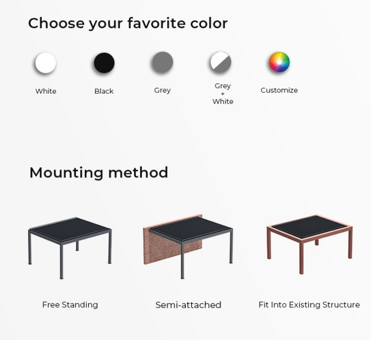 An aluminum patio pergola serves as a stylish and durable addition to outdoor spaces, offering both functionality and aesthetic appeal. Constructed using lightweight yet robust aluminum materials, these pergolas provide a versatile solution for creating shaded areas in gardens or on patios. With their sleek modern design and low maintenance requirements, aluminum patio pergolas are ideal for enhancing outdoor living spaces and providing a comfortable retreat for relaxation or entertainment.